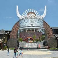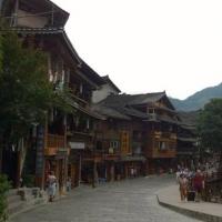 西江千户苗寨的寨门高大宏伟,从这里走大概10分钟,经过一条商业街,就能够真正进入苗寨了。我们到达的时候,一群苗族男女聚集在广场上,不一会,就跳起了欢快的舞蹈。苗寨的一个鼓藏堂里陈列着一面鼓,几个牛头骨,游客可以进去敲鼓,举牛头祈福,价格随意,看心情给就20-30元可以。回民宿爬山用了将近半小时,晚上寨子里很黑,上山的路不太好走,我们开着手电,也只能照亮面前的一小段路。爬到山顶出了一身汗,而且感觉又饿了,终于知道这边的原住民为什么都那么瘦了。第二天我们来到苗寨的中心,是一个广场,四周是带座椅的长廊,有活动的时候,这里能容纳几千人。广场中心有身穿苗族服饰的游客在拍照。苗寨古街两侧都是商铺,有各种食