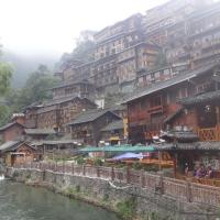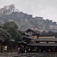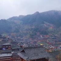 西江千户苗寨应该是贵州必游的景点了。可以用不虚此行来形容。很有民族特色的建筑和风俗,很好的一趟旅行。浓郁的雾气缭绕在山间,也笼罩在苗寨上空。寨子里的水很清澈,清晨走走,静谧。