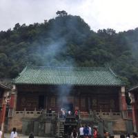 复真观,武当山必去景点之一,也是香客最多的地方。 求神拜佛心诚则灵,而要去武当山祈福也并不是这么容易的事,以前的人都是靠腿天将将亮就爬山,而我们现在可以坐景区大巴上到入口,还是需要爬一段,已经很多人气喘吁吁,那对那些那时生活在山下的古人来说就更疲惫,十几公里山路不是嘴上说说这么简单,那时还没有修葺过,必定更难爬。 古色古香红砖绿瓦,武当山我必定会再去。
