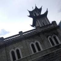 在磨西古镇歇脚。磨西在羌语里是宝地的意思。 古镇所在的那条街,一头是木制的古建筑群,街上也有很多酒吧,白日里,已有轻歌曼语穿了出来。 尽头是长征时期毛泽东曾经入住过的天主教堂。 街的另一头,未经修饰的普通商业街,还未落日,街上两边的食铺里,烤全羊,竹筒饭已经准备起来了,一场夜的盛宴即将开启。