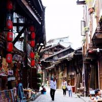 磨西古镇古色古香的老街,还有一个保存很好的哥特式教堂,毛主席曾经在这里住过,并主持会议,教堂教堂前的雕像很好,很有历史意义,老街里的青稞酥甜度适中,很好吃,十元一斤。