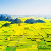 再不去罗平看油菜花,可就错过时机了就要等到明年了。望不到天边的油菜花,那么大一片普普通通的油菜花形成了壮观的景色,近百万亩花海,漫山遍野的金黄铺面而来,壮观与震撼,看到的更美!不虚此行!金鸡峰丛规模大,螺丝田有层次,各有各的美!