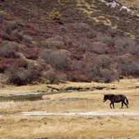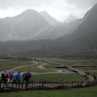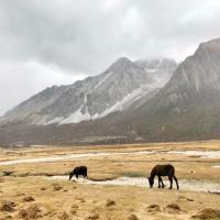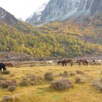 个人认为长线的真正起点是洛绒牛场这里,可以选择骑马或徒步。就景色而言5月初还不是漂亮的时候,枯萎的草地还没有复苏,但又有别样的美,同样可以拍出大片的感觉。