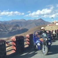 洛绒牛场群山环绕,风景优美,犹如世外桃源一般,但这里海拔也不低,可能有4000米,不过到这里,可以乘坐游览车,七公里的路程,坐游览车需要20分钟,十分节省体力,这样为后来的大环线攀登可以节省体力,牛场旁有马帮,可以骑马去牛奶海