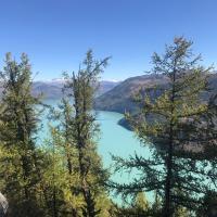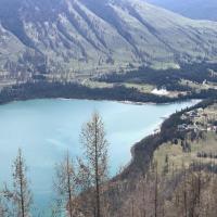 从观鱼台可以俯瞰整个喀纳斯湖 1000多个台阶并没有很累因为比较平缓吧 但是景色一般般 没有加拿大的Peyto Lake美