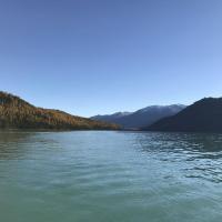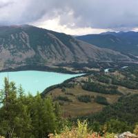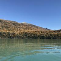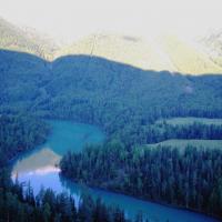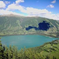 俯瞰喀纳斯湖必须登临观鱼台,山顶景色很好,还可以看到雪山顶白雪覆盖。喀纳斯湖水的中央湖,据说在不同的季节会呈现不同的颜色,真的很奇妙,值得一看。