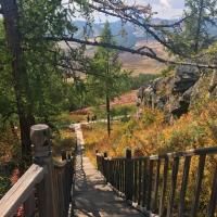 不要被喀纳斯观鱼台的1068个台阶所迷惑,台阶是很平缓的,有的是石头台阶,有的是木头的,交错出现,设置多个观景点,攀登不是很累。
