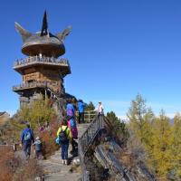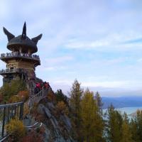 观鱼台位于喀纳斯湖西岸骆驼峰顶上,是俯瞰喀纳斯湖全景的最佳角度,也是为了观湖怪而建的。据说举目北望,能清楚地看到阿尔泰山的最高峰——友谊峰。