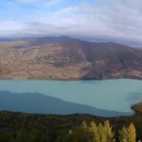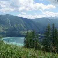 车到车站,还需要爬1068级台阶才可以到达观鱼亭,这里海拔2300米和湖面有600米的落差视觉角度绝对一流,四分之三的湖面尽收眼底,可以从喀纳斯的三弯一直看到鸭泽湖。