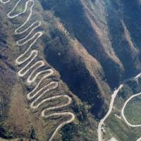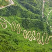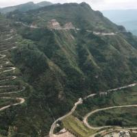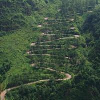 史迪威公路最为出名的晴隆二十四道拐是抗战公路,是“史迪威公路”的形象标识。古称“鸦关”,雄、奇、险、峻,有一夫当关,万夫莫开之势。从山脚至山顶的直线距离约350米,垂直高度约260米;在倾角约60度的斜坡上以“S”型顺山势而建,蜿蜒盘旋至关口,全程约4公里