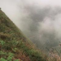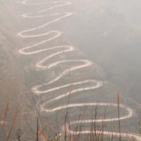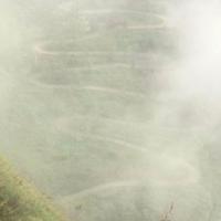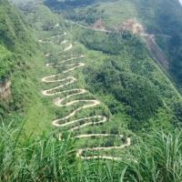 晴隆二十四道拐,在这条公路上发生过很多感人的故事。云贵多山地形复杂,24道拐成了这条公路的标志。。景观台从安南古镇买票坐车上去,每人60元,是观看24道拐的最佳位置。在售票大厅,被告知山上雾很大,不一定能看到。签了知情书,坐上观光车出发。到了山顶,果真是雾气蒙蒙,能见度不到100米,不时下起细雨。冷是肯定的,放弃是不可能的,云雾下面会是怎样的风景?就在我胡思乱想的时候,我们面前的云雾忽然化开,就那么十几秒钟,很快又合陇过来。就象那首歌唱的"没有一点点防备,也没有一丝顾虑,你就这样出现在我的世界里,带给我惊喜,情不自已”。24道拐身临其境比图片更让人震撼。