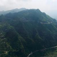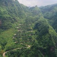 晴隆二十四道拐的最高一拐,相当于终点,想一览全景必须去对面的 晴隆 山上。之前把这地形想得太复杂了,其实就从二十四道拐终点边另一条向上的柏油岔道走,早上路障还没上班,想必门卫也主要是拦游客的车,我这样走路进去的可能是去五一村、五里村的,而且路上晨练的也很多。
