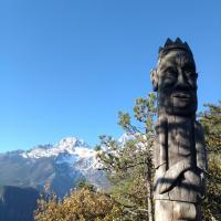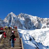 玉龙雪山位于玉龙纳西族自治县境内,是北半球最南的大雪山。高山雪域风景位于海拔4000米以上,以险、奇、美、秀著称于世,随着节令和气候变化,有时云蒸霞蔚,玉龙雪山时隐时现,有时碧空万里无云,群峰晶莹耀眼。清代纳西族学者木正源曾形象地归纳出玉龙十二景,即:三春烟笼、六月云带、晓前曙色、暝后夕阳、晴霞五色、夜月双辉、绿雪奇峰、银灯炫焰、玉湖倒影、龙早生云、金水璧流、白泉玉液。玉龙雪山景观大致可分为高山雪域风景、泉潭水域风景、森林风景、草甸风景等,主要景点有玉柱擎天、云杉坪、雪山索道、黑水河、白水河、蓝月谷及宝山
