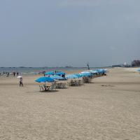 银滩距离北海市内不太远,其实北海市本身也很小,多路公交车直达,目前是免费的,玩儿各种项目是收费的。银滩景区位于海岸线边的狭长地带。沙子颜色白净且非常细腻。非常值得一来。