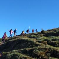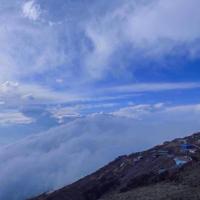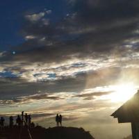 到达牛背山山顶已是傍晚十分,山顶大雾。遗憾地没有看到日落美景。同时,心中默默祈祷明天早上的天气不要这样。山顶有很多驿站,都是附近村民搭建。基本都是板坯简易房,只能说比帐篷强点有限。床位费也不贵,大概一个人30-50之间。