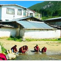 格尔底寺的伟大,不仅在于如今呈现出的壮观景象,更在于它所凝结的当地藏族人民伟大的智慧; 格尔底的精美,不仅在于外观的气势恢宏,更在于那些精美的,令人过目难忘的精彩装饰。 清晨和煦的阳光,洒在绿意盎然的大地上,早起的鸟儿,静静立于围栏之上,发出无比动听的鸣叫。