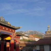 郎木寺与格尔底寺只有三四百米,两边寺院晨钟和螺号声此起彼伏地响着,煨燃的柏香缕缕青烟和着僧侣们的诵经声四散开来,给静谧祥和的草原和林中古刹平添了不少情趣和诗意,使人的杂念和尘世的烦恼不觉间抛向九霄云外,让人顿时产生一种物我两忘返朴归真的意想。人,似乎只有回归到大自然之中才有那种远离尘嚣,忘记纷繁世事的脱俗闲逸之感。