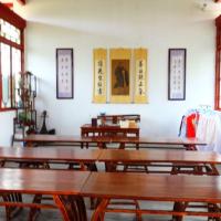 东坡书院的门口有一颗古老的滑桃树,是当时的儋州知州所栽。一进书院便是载酒亭,径直穿过载酒亭就是载酒堂,载酒堂是宗祠样式的,位于整个东坡书院的中心,据说是苏东坡讲学和会友的地方,门头正中挂着一块“先生悦之”的大匾。