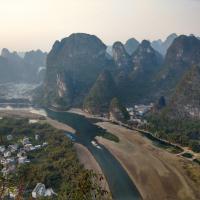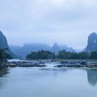 在兴坪古镇附近,比较小的一个古镇,人不多,略显冷清,有卖纪念品和桂林特色酒的小店,安静地逛逛走走还不错2.漓江精华游起点:乘小型机动船,载10人左右那种,从兴坪镇到杨堤,再返回兴坪。p.s:下过雨后不建议游漓江,山还是那个山,可水就(恍如黄浦江)。