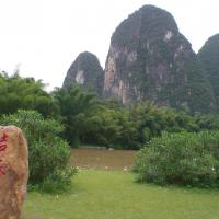 兴坪古镇只有古戏台还存古镇风韵,那个牌坊标明此处是古镇,其余均已难现古镇痕印。傍晚,化了四十五分钟登上老寨山,看漓江的日落,举目远望,群峰排列有序,清澈的漓江蜿蜓流淌在群山怀抱中。老寨山的盘山石径据讲是个日本人为漓江风光倾倒而修筑的。为了看老寨山的日落之景,很值得在兴坪住住上一晚。