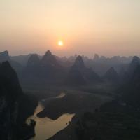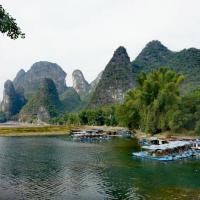 兴坪古镇真的好美,做为漓江精华段,有漓江第一美的美誉。交能便捷,坐阳朔站下车,5元的车票十分钟车程就到古镇。在九马画山前的石滩,山是尖的,树是斜的,有点林芝的味道。傍晚的漓江美得更让人窒息,一缕青烟绕群山,心难填,老翁渔火,杨家博山沉水香。
