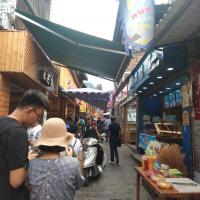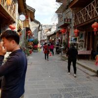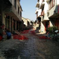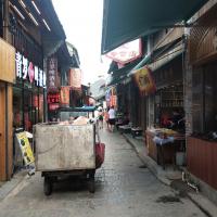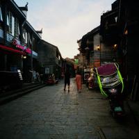 兴坪古镇是一条约1公里多长的青石板路老街,街道木板稍显老旧,墙体呈现斑驳感,有村舍几座,没有过度开发商业化,游客不是很多,街道显得还算清幽肃静。