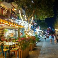阳朔西街位于阳朔县城中心,我去的时候也是晚上,灯火通明,街道两边有不同的商铺,慕名而来逛西街的人真是不少,我们是晚上去的西街更是人挤人,这条街主要就是汇集了饭店、小工艺品店、酒吧,咖啡店组成,很有特色。
