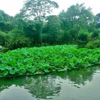 杜甫草堂面积虽然不大,但绿树成荫,遍地绿油油的草,加上小溪,都让人觉得有一种身处田园的感觉,即使是夏天也不会感觉炎热,已经去了N多次,还会再去。园子挺大,位于市中心,交通很方便,里面绿化非常好,空气清新。