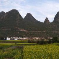 万峰林的门票其实可以不买,租个自行车骑骑也可以,买了门票要么走要么只能坐景区里面的观光车,自行车不能骑进去,这点不好。与其这样还不如外面看看也就那些山峰,好在油菜花开了,天气暖和。交通管制的一塌糊涂,找景区找地方停车就花了2个多小时,果断退票自己开车绕对面的山峰逛逛。