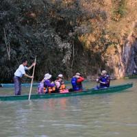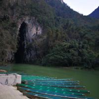 坝美村,这是本次行程我最喜欢的一个地方。一个很小的壮族村寨,它的惊奇之处是,在飞机高铁高速发达的现代社会,坝美村至今未通公路!进入村子必须要先坐一段马车抵达溶洞口,然后坐船经过一公里长的溶洞才能进出村子。 坐船进岩洞里一片漆黑,偶尔有山缝中撒下的微光,有点恐怖,我想起盗墓笔记里那个溶洞,太像了!下了船走出洞口那一刻,豁然开朗,村子只有百十户人家,民风纯朴,风景优美,四周群山环绕,还真是找到世外桃源的感觉了!
