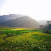 坝美村,第四次人口普查才发现这个美丽的地方。景区门口坐马车到溶洞处,外面艳阳高照,宽阔的洞里冷风袭人,黑暗中小船里的人犹如探险。幽闭恐惧症的人估计会难以承受。一公里后眼前豁然开朗,满山油菜花扑面而来,青山绿水一片小清新景象。因酷似文学家陶渊明所描述的桃花源,故被称为“最后的世外桃源”。
