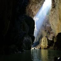 坝美村位于云南文山州广南县北部,村子四面环山,不通公路。进出寨子主要靠村前村后两个天然的石灰溶岩水洞,村民们要摸着岩壁趟水、撑竹筏、划独木舟、坐小船,经过几公里长的幽暗的水洞才能进出。跟陶渊明所描述的世外桃园极为相似。