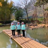 坝美村四周群山环抱,幽静秀美。进入景区需乘3次船,坐2次马车。坐上猪槽船,穿越2公里长,幽暗天然的石灰溶岩水洞,你会有豁然开朗,柳暗花明又一村的感觉。春季,坝美开满桃花更像“世外桃源”。