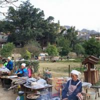 坝美村有特色的一条小村,特色在于进出村都要坐马车再坐船,寨子古老而优美,高大的榕树枝繁叶茂,巨型的树根相互缠绕,很美。村内还比较原生态,老人路边卖当地的小吃,黑糯米粽子好吃有一股特殊的香气,村内景色不多。出村时要先坐一段小船,再坐马车,然后再坐船进入汤那洞,洞内有彩灯和钟乳石,很独特。出洞后只能坐黑车回入口处取车。据黑车师傅说,今年景区要整改了,管理就正规了。总之,景区就象桃花源记描述的景象一样。