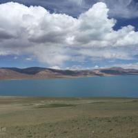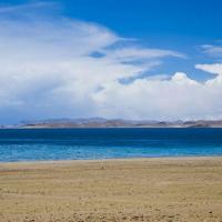 当惹雍措又称当热错、唐古拉攸穆错,位于藏北文部二村、象雄王国遗址旁边,海拔4530米,是西藏著名的圣湖之一,也是苯教最重要的神湖。此处人迹罕至,湖水明净清澈,美不胜收。 当惹雍错湖面形似一金刚杵,上圆中细下部长,四面群山环抱,南面的达果雪山山顶积雪终年不化。因为易守难攻的地势和良好的气候,这里曾是象雄王朝的王宫所在地,是迄今藏北象雄遗迹最集中的地区之一,是解读象雄文化之谜的一把钥匙和研究苯教文化的重要场所。