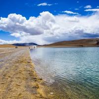 在色林措不仅可以欣赏到如梦如幻的美景;也可以感受藏北优美的草原风光。湖水清澈透明,应阳光照射折射出不同深浅的蓝色和绿色。云朵压得非常低仿佛伸手就可以触到。尽管没有大海的涛涌浪翻;却一样的波光粼粼 壮阔浩渺。