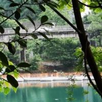 东江湖水很清很绿,像一块绿翡翠,对岸水边的小亭子应该是2号观景台虽然湖面没起雾,不过风景也挺美的。空气特别好,在这里踩踩单车运动一下超棒其实如果只是去看雾,不上四号观景台,不去别的地方,是不用买票的,走路进去就行了,但是如果要去大坝,看龙景峡谷,有10公里,还是要买票坐车进去,而且峡谷门口也有验票的。第一次来,不想留下什么遗憾,还是买了票,每个景点都去看看吧。在马蜂窝上订了东江湖2线票,163元/张。由于取票处早上7点才开门,第二天不用起太早。门票包含雾漫小东江、车观猴古山瀑布、东江大坝外景、龙景峡谷、游东江湖、兜率灵岩溶洞+景区内大巴。如果是1线票,就不包括兜率岛,票价为90元/张。下车就是