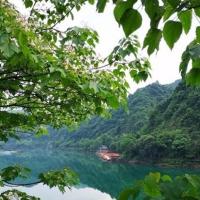 就是郴州人还是第一次到资兴东江湖,也就这一次让我意犹未尽,来之前亲朋好友都打探过搜集过,一致反映是山好水好,连住哪家酒店都有很多选择,由于家就在郴州高铁站附近搜索也不见得有很多还是按之前亲朋好友的策略,走西站做的201路车7元车费到终点站1个小时30分车程,酒店就在车站的十字路口璟江花园酒店,由于之前朋友住过这里有会员卡148 就住了豪华双人间,房间用品装修也是物超所值的,接着是在她们的餐厅用餐服务很热情菜式味道价格也适中,还赠送了ktv免费券,真是不错的享受,早上5点起床出发打出租车20元拿着之前再网上买的75的门票到景区门口坐的工作人员指引的绿色通道车让师傅把我们留在了2号桥下车的感觉是无