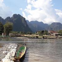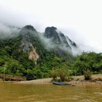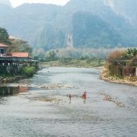 南松河(Nam Song)围绕在万荣周边,是老挝万荣最美的地方,河岸上有桂林山水一般的美丽风光,也有各式奇特的洋房,夕阳西下的时候,牧牛沿着河边回家,皮划艇在河水中漂流。