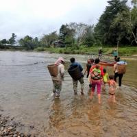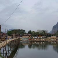 南松河,老挝‘废都’万荣的精华所在。民众过河靠东南亚特色的竹桥,机动车则可从镇内唯一的钢索简易桥过江,费用一个来回程两万基普。