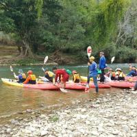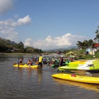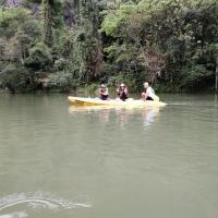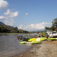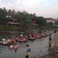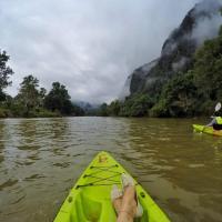 老挝万荣的南松河,每天有很多游客坐着轮胎顺着河漂流,更多的是划kayaking沿着河从上游向下游漂流。