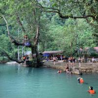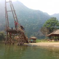 万荣城又小又破,就是南松河漂流和丛林铁索,溶洞探险就一点点长,漂流主要就是划船,河流很平缓,基本没有落差。丛林飞跃,每一段都很短,高度也不大,基本没多少刺激