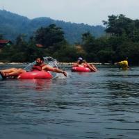 .南松河正是穿越万荣,给万荣带来无数旅客的源泉; 有一半的户外活动在水上,划艇、轮胎漂流都是这里最火的项目。