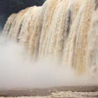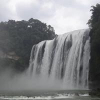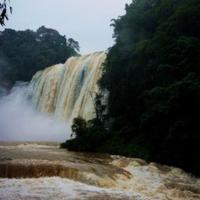 第一次去黄果树是大学时期,远远就觉得下雨了,真正的飞流直下三千尺!由水帘洞内穿过瀑布,清凉神秘,难得的体验,第二次去赶上暴雨期,想来瀑布水也是混浊发黄的,不想破坏先前的美好印象。索性没有进大门,只在门口留影就草草离开了。