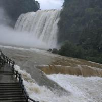 黄果树瀑布好美,好壮观,一直想去,终于看到了,人很多,很热闹,也属于热门旅游目的地,但是进入汛期,前一阵下了很多雨,水很大,也很浑,景区内许多景点都关闭了。当地吃的有点辣,不过还可以,挺好吃的,值得一去。