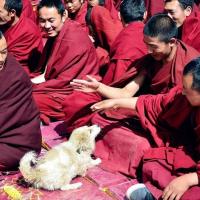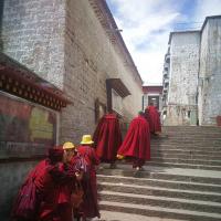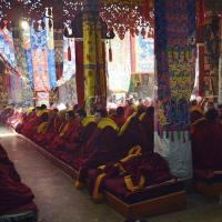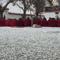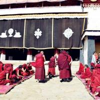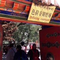 色拉寺的色拉,即野蔷薇。佛与花,一直有着某种神秘的联系。野蔷薇盛开的地方,寺庙选址是否别有寓意?寺庙主供马头明王。朝拜马头明王时,需弯腰将头伸进神龛下方一个小洞里,以额头轻触佛像基座,以祈求明王保佑。西藏各寺都有辩经活动,却以色拉寺辩经最负盛名,缘其规模与规范、激烈程度。每天下午三点,色拉寺都有规模较大的辩经活动,以考察僧人对佛法的学习及理解程度。众多僧人有序围坐一起,外人可任意围观,遵守辩经场的规则即可(如不得进入场中央、不得高声喧哗、不得使用僧人坐垫、不得相机拍照等)据说辩经是获得佛法最高学位—格西学位的必经之途。辩经场不能用相机拍照(手机可以),整个辩经活动持续了很久。外行人虽听不懂他们