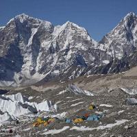 珠峰大本营位于绒布寺南方,由一群帐篷旅馆围成,中间树立一面国旗和一面珠峰保护区旗帜。珠峰大本营主要是提供游客住宿,有卫生间和帐篷邮局。珠峰大本营,是为了保护珠峰核心区而设立的一片保护地带,海拔5200米。是观赏拍摄珠峰的理想位置之一,也是登山队从中国这一侧攀登珠峰时的大本营。