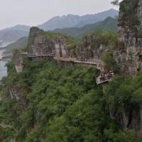 易水湖被称为“小桂林”是有些过誉了,但的确是风光秀丽。进入景区大门,直接就是码头,游览易水湖主要是登上湖对岸的老子峰,而乘船是唯一抵达方式。因此买往返船票是必须的,你能选择的只是乘大船还快艇。老子峰有3公里长的环形临水登山栈道,虽然蜿蜒曲折,但设计合理,登山台阶路坡度平缓,一步一景,不走回头路,全程基本无难度。从山上向下望去,山石奇特,湖水碧绿,令人心旷神怡。景区的痛点是船只运力不足,游客一多排队等船时间过久,如旺季前往建议错峰。