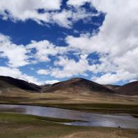 安久拉山(4325米)。其实从 怒江 大桥开始,一直在上坡,但到安久拉山路线长,故一直很平缓,完全没感觉。甚至没注意垭口在哪儿,就这么稀里糊涂的过来了。植被很稀少,路上车子也是少得出奇。左边有个高山湖泊,视野开阔,显得很空旷,万籁俱寂,感觉有些凄凉