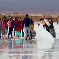 茶卡盐湖也叫茶卡或达布逊淖尔,位于青海省海西蒙古族藏族自治州乌兰县茶卡镇。茶卡镇地处109、315国道交汇处,是古丝绸之路的重要站点,东距西宁298公里,西距州府德令哈200公里,被誉为柴达木东大门,历史上是商贾、游客进疆入藏的必经之地。在这里,可以乘小火车深入湖中观光,可以观看现代化大型采盐船采盐时喷水吞珠的壮丽场景,可以欣赏盐湖日出和晚霞的绚丽画卷,还可以透过清盈的湖水,观赏形状各异、正在生长的栩栩如生的朵朵盐花,探求湖底世界的神秘。